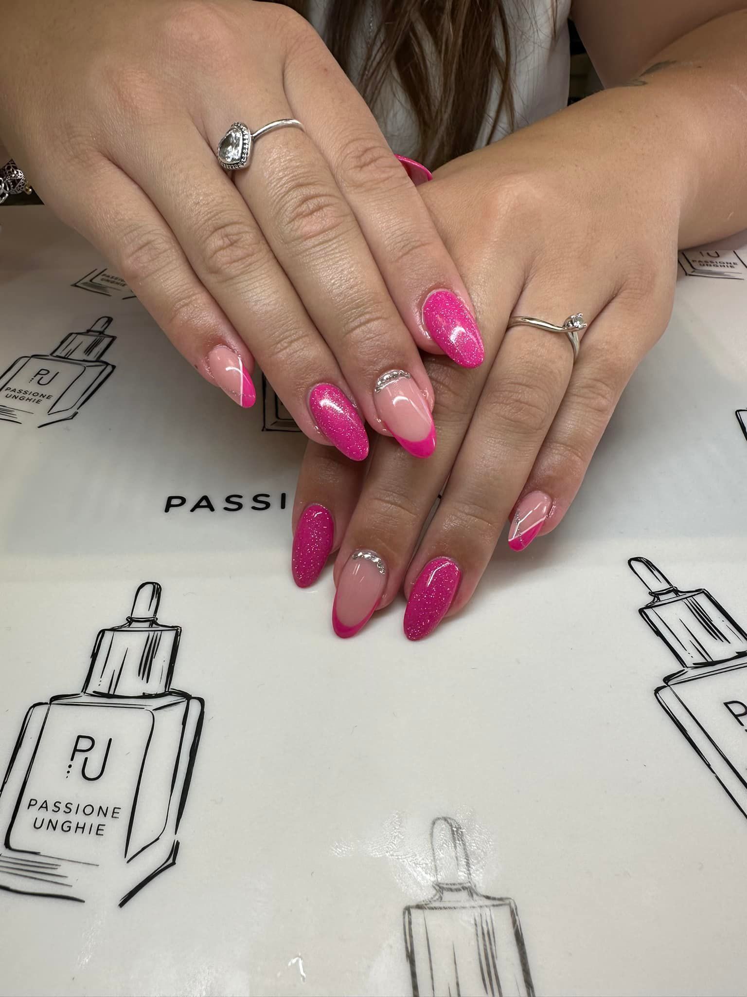 - Applicazione di strass e dettagli 3D per unghie glamour